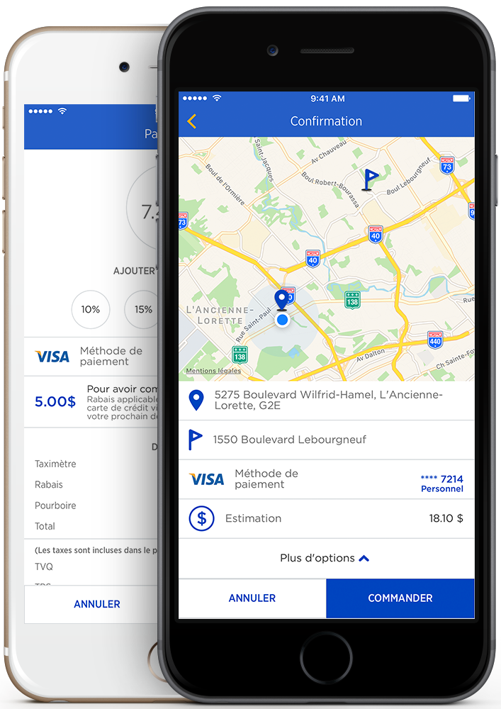 Le montant final d’une course dépend du trajet et est calculé selon les règles applicables au service taxi.